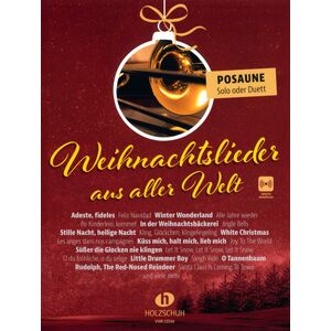 Holzschuh Verlag Weihnachtslieder aus aller Welt Posaune: 31 Weihnachtslieder arrangiert für 1 bis 2 Posaunen, bearbeitet von Uwe Sieblitz, mit Texten und Akkorden, leichter Schwierigkeitsgrad, ISBN 9783864342004, ISMN 9790201311210, VHR 13516, 23 x 30,5 cm, 44 Seiten, inkl. Online-Audio