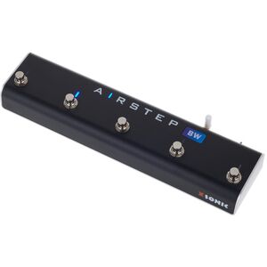 Xsonic Airstep BW Edition - Wireless Footswitch for Katana Air and Waza Air, Smart Multi Controller / Wireless Fußschalter für Boss Katana Air und Waza Air, kein Setup erforderlich, funktioniert sofort, schaltet Channels, Booster, Mod, FX, Delay und Reverb über Bluetooth, erlaubt es Musikern fünf Effekte gleichzeitig zu nutzen, 4 wählbare Control Modes mit unterschiedlicher Belegung der Fußschalter, Boss BTS App kann gleichzeitig verwendet werden, wenn Fußschalter angeschlossen ist, integrierte Batterie bietet bis zu 300 Stunden kabellosen Betrieb zwischen den Ladevorgängen, 2 wählbare Schalt-Möglichkeiten (Press, Long-Press) um verschiedene Befehle zu senden, 5 Fußschalter mit Status LEDs, 30 m Reichweite für kabellose Kommunikation, Batterie lässt sich mit 5V - 9V DC aufladen (200 mA), Power An/Aus Schalter, Stromversorgung via optionalem 9V DC Netzteil, 2,1 mm x 5,5 mm Hohlstecker, Polarität (-) innen, robustes Aluminium-Gehäuse, Abmessungen (L x B x H) 300 x 70 x 45 mm, Gewicht 650 g, USB-Hohlstecker Adapter (Lade-Kabel) im Lieferumfang enthalten
