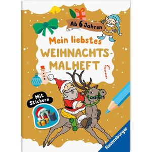 Brand : Ravensburger, Binding : paperback, Edition : 1, Label : Mein liebstes Weihnachtsmalheft mit Stickern ab 6, Feature : Mein liebstes Weihnachtsmalbuch mit Stickern für Kinder ab 6 Jahren, medium : paperback, numberOfPages : 24, publicationDate : 2024-07-01, languages : german, ISBN : 3473488992
