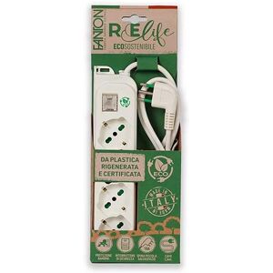 Fanton ECO RELIFE OMEGA Mehrfachsteckdose 4 Steckdosen italienisch-dual-size/deutsch std. 2P+E 16A Kabel 1,5 m. 3G0,75 H05VV-F Stecker italienische Std. 2P+E 10A + leuchtender automatischer berlastschalter. Anzahl Steckdosen/Steckdosen: 4 Steckdosentyp: Dual-Size IT/DE 2P+E 16A Steckertyp: Italienisch 2P+E 10A Kabellänge: 1.500 m Querschnitt und Kabeltyp: 3G0,75 H05VV-F Schutzart: IP20 Material: Regeneriertes Polypropylen Farbe: Weiß Zubehör/Optionen: Überlastschalter Einzelverpackung: ECO RELIFE Box Qualitätszeichen: CE Nennspannung (Volt): 250 V Wechselstrom Stromstärke: 10.000 A Frequenz (Hertz): 50 - 60 Hz Leistung (Watt/Kilowatt): MAX 2300W