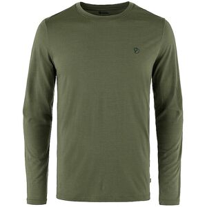 Mit dem Abisko Wool Longsleeve von Fjällräven hat man ein Basic für jede Gelegenheit greifbar Das stilreine Shirt passt ebenso gut in die Garderobe für den Alltag, wie zu einem Outdoor-Outfit Durch den Mix aus Wolle und recyceltem Polyester findet man die ideale Balance aus allen Vorteilen von Merino und den schnell trocknenden Qualitäten der Synthetik (außerdem macht es das Longsleeve abriebfester unter dem Rucksack) Das Abisko Wool kann man durch das leichte Material, den luftigen Schnitt und die klimaregulierenden Eigenschaften auch an warmen Tagen super tragen Material: 50 % Wolle, 50 % Polyester Farbbezeichnung: Laurel Green