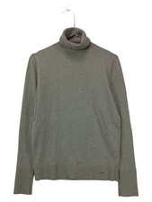 Damen Pullover aus weichem Sweat Rollkragen Langarm mit überschnittenen Schultern Kurze Seitenschlitze Lockere Passform Unifarben mit melierter Optik Farbbezeichnung: Medium Silver Grey Melange Material: 71% Polyester, 28% Viskose, 1% Elasthan