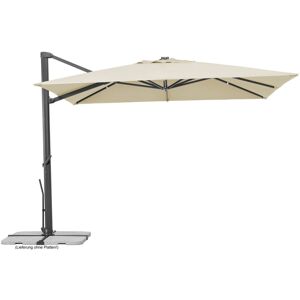 Produktdetails: Funktionen: neigbar, um 360° drehbar, Eigenschaften: verrottungsfest, wasserabweisend, Öffnungsmechanik: Kurbelmechanik, Farbe & Material: Farbbezeichnung: silbergrau, Material Gestell: Aluminium, Material Schirmtuch: Polyester, Materialzusammensetzung: Obermaterial: 100% Polyester, Materialeigenschaften: UV-beständig, Maße & Gewicht: Länge Schirm: 300 cm, Form Schirm: quadratisch, Durchgangshöhe minimal: 204 cm, Form Standrohr: rechteckig, Breite Standrohr: 5,8 cm, Tiefe Standrohr: 9,3 cm, Gewicht: 25 kg, Hinweis Maßangaben: Alle Angaben sind ca.-Maße., Breite gesamt: 300 cm, Höhe gesamt: 253 cm, Hinweise: Aufbauhinweise: teilmontiert, Hinweise: Schirm bei aufkommenden bzw. spürbarem Wind schließen, Zur Verwendung auf Dachterrassen oder an ähnlich windexponierten Standorten nicht geeignet, Pflegehinweis: Bespannung abnehmbar für Handwäsche, Lieferumfang: Plattenständer, Schutzhülle, Wissenswertes: Hinweis Lieferumfang: Lieferung ohne Platten