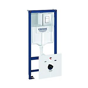 Grohe Rapid 5 in 1 WC-Vorwandelement 38827000 Rapid SL 5-in-1 Set für WC Spülkasten GD 2 mit kleiner Revisionsöffnung 1,13 m Bauhöhe für Vorwand- oder Ständerwandmontage Stahlrahmen, pulverbeschichtet, selbsttragend für Trockenverkleidung, komplett vormontiert fixierte Objektanschlüsse für Einzel- oder Schienenmontage mit Schnellverstellung und Höhensicherung Befestigungsmaterial, TÜV-geprüft 2 WC-Haltebolzen, Keramikbefestigung Schraubenabstand 180/230 mm Ablaufbogen Ø 90 mm tiefenverstellbar Reduzierstück Ø 90/110 mm Zu- und Ablaufgarnitur Spülkasten GD 2, 6 - 9 l werkseitige Einstellung 6l und 3l pneumatisches Ablaufventil mit zwei Funktionen: 2 Mengen oder Start & Stopp Wasseranschluss von links/rechts/hinten Armaturengruppe I DIN geprüft, schwitzwasserisoliert Wasseranschluss DN 15 mit integriertem Eckventil und werkzeugloser Schlauchverschraubung werkzeuglos montierbarer Revisionsschacht mit Rohbauschutz mit Zubehör für Vorwandmontage mit GROHE Fresh Umrüstset mit Abdeckplatte Skate Cosmopolitan für 2-Mengen- und Start & Stopp-Betätigung senkrechte und waagerechte Montage 156 x 197 mm, chrom, aus ABS GROHE StarLight® Chromoberfläche mit WC-Schallschutzset