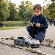 Der Traum einen schönen sportlichen Wagen zu fahren kann jetzt wahr werden. Mit diesem offiziell lizensierten Deluxe Car Modell von Jamara können Sie sich das Gefühl einen Traumflitzer zu besitzen ins heimische Wohnzimmer holen. Mit LED Fahrlicht, einem detailgetreuen Innenraum und perfekt nachgebildeten originalen Details an Chassis und Karosserie, die mit viel Liebe umgesetzt wurden, überzeugen die Fahrzeuge auch durch die hochwertige Verarbeitung. Mit der ergonomischen Fernsteuerung halten Sie, wie in einem echten Rennwagen, die Schaltzentrale in der Hand und erreichen Geschwindigkeiten bis zu 11 Km/h. Leicht zu erlernende Kommandos lassen das Modell genau das tun was Sie vorgeben. Also, ab zur Stadtrunde auf dem Parkett im Kinderzimmer und dem Spielspaß steht nichts mehr im Wege.Alle Deluxe Car Modelle von JAMARA sind Roboterlackiert. Dieses Verfahren ist einmalig bei den lizensierten Fahrzeugen. Statt einem einfachen eingefärbten Kunststoff kommen bei diesem Lackierverfahren Farben zum Einsatz die dem originalen Farbton des Fahrzeugherstellers nachempfunden wurden. Detailgetreuer Innenraum Bei den lizensierten Fahrzeugen im Maßstab 1:12 gibt es neben der originalgetreuen Fahrzeugbauform auch einen dem Original nachempfundenen Innenraum. Mit Lenkrad, Armaturenbrett, und Ausstattungsmerkmalen wie beim echten Automobil dieser Marke. Bis ins kleineste Detail wurde hier auf alles geachtet und umgesetzt. LED Fahrlicht Wie bei einem echten Fahrzeug in der Spezialausstattung gibt es bei diesem Modell ein Start-Stop LED Fahrlicht. Sobald das Modell losfährt leuchten die Scheinwerfer hell auf. Wenn das Auto stoppt gehen die LED Fahrlichter wieder aus. Diese Funktion spart Energie und erhöht die Fahrzeit des Modelles. Erforderlich 7 Mignonbatterien., Artikelbezeichnung: Modellbezeichnung: Porsche, Produktdetails: Farbbezeichnung: schwarz, Geschwindigkeit maximal: 11 km/h, Frequenz Funkfernsteuerung: 2,4 GHz, Fahrzeit maximal: 60, Typ Netzstecker: kein Netzanschluss vorhanden, Lieferumfang: Modell, Fernsteuerung 2,4GHz, Anleitung, Maße & Gewicht: Maßstab Fahrzeuge: 1: 12, Breite: 16,3 cm, Tiefe: 37,7 cm, Höhe: 10,5 cm, Hinweise: Altersempfehlung: ab 6 Jahren, Warnhinweise: ACHTUNG! - Benutzung unter unmittelbarer Aufsicht von Erwachsenen., ACHTUNG - Für Kinder unter 36 Monaten nicht geeignet. Enthält verschluckbare Kleinteile. Erstickungsgefahr! Von Kleinkindern unbedingt fernhalten., Lieferzustand Batterien / Akkus: Keine Batterien beigelegt, Stromversorgung: Anzahl Batterien: 7 Stk., Batterie-/Akku-Technologie: 1,5-V-Mignon (LR6/AA), Technische Daten: WEEE-Reg.-Nr. DE: 35.585.572