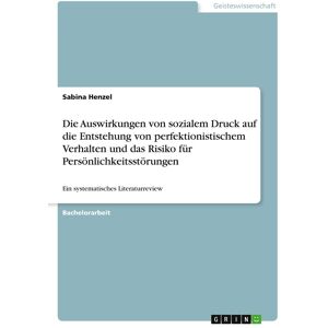 Binding : paperback, Edition : 1., Label : Die Auswirkungen von sozialem Druck auf die Entstehung von perfektionistischem Verhalten und das Risiko für Persönlichkeitsstörungen : Ein systematisches Literaturreview, medium : paperback, numberOfPages : 68, publicationDate : 2025-05-11, languages : german, ISBN : 3389131604