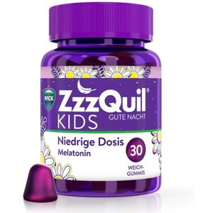 Anwendungsgebiet von Wick Zzzquil Gute Nacht KidsWick Zzzquil Gute Nacht Kids sind ein Nahrungsergänzungsmittel mit Melatonin, Vitamin B6 und Kräuterextrakten. WICK ZzzQuil Gute Nacht KIDS, Weichgummis zum schnelleren Einschlafen für Kinder* WICK ZzzQuil Gute Nacht KIDS Weichgummis sind eine kleine Einschlafhilfe für Kinder* mit einer niedrigen Dosis Melatonin. Es ist gut für Ihr Kind, abends schnell in den Schlaf zu finden*. Zu wenig Schlaf beeinträchtigt das Gehirn der Kinder, Schlaf hat einen direkten Einfluss auf Stimmung, Aufmerksamkeit, kognitive Leistung, Lernfähigkeit sowie das Gedächtnis. Hat Ihr Kind Probleme, selbst nach einem warmen Bad und einer Gute-Nacht-Geschichte mit dem Einschlafen? An solchen Abenden können Sie WICK ZzzQuil Gute Nacht KIDS Weichgummis mit niedriger Dosis Melatonin ausprobieren. Die auf Kinder* abgestimmte Rezeptur mit einer niedrigen Dosis Melatonin (0,5 mg) und einer Kombination aus pflanzlichen Extrakten von Kamille und Lavendel hilft Ihrem Kind, schneller einzuschlafen*, wenn die normale Schlafhygiene nicht ausreicht. Natürlicher Waldfruchtgeschmack, ohne künstliche Aromen, Farbstoffe, Süßungsmittel und Konservierungsstoffe, laktose- und glutenfrei. 1 Weichgummi enthält 0,5 mg Melatonin, 5 mg Kamillenextrakt, 5 mg Lavendelextrakt, 0,7 mg Vitamin B6. Melatonin ist in vielen Lebensmitteln enthalten es ist zudem ein körpereigenes Hormon, das unseren Schlaf-Wach-Rhythmus reguliert. WICK ZzzQuil Gute Nacht KIDS ist ein Nahrungsergänzungsmittel im Weichgummi-Format eine kleine Einschlafhilfe für Kinder*. WICK ZzzQuil Gute Nacht KIDS verursacht weder einen Gewöhnungseffekt, noch Müdigkeit am nächsten Tag. Wir empfehlen WICK ZzzQuil Gute Nacht KIDS nicht als regelmäßigen Bestandteil der Schlafhygiene Ihres Kindes, aber es kann Ihrem Kind unter bestimmten Umständen helfen, schneller in den Schlaf zu finden* (z. B. vor einer Prüfung oder auf Reisen).