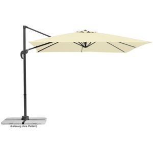 Schneider Ampelschirm Rhodos Smart natur 300 x 300 cm Produktnummer: 0691252450 Unser innovativer Ampelschirm Rhodos Smart kombiniert die Flexibilität und Größe eines Ampelschirms mit der einfachen Bedienung eines Balkonschirms. Die gesamte Steuerung der Funktionen geschieht mit Hilfe der Kurbel und des Handhebels, somit wird die Anpassung an den jeweiligen Sonnenstand zum Kinderspiel. Wenn Sie den Schirm mit einer unserer Universal-Halterungen ausstatten, ist unser Rhodos Smart sogar rollstuhlgerecht. Die hochwertige Bespannung spendet ausreichend Schattenfläche und schützt Sie zudem zuverlässig vor den UV-Strahlen. UV-Schutz 50 + Aufspannung durch integriertes Kurbelsystem Schirmhöhe: 253 cm Material Sonnenschirmbespannung: 100 % Polyester Schirmmast: Aluminium pulverbeschichtet anthrazitgrau Maße Schirmmast: 58 x 93 mm Maße aufgespannter Schirm: 300 x 300 cm (B x T) Integriertes Kurbelsystem zum Neigen Schirmform: quadratisch Farbe: natur verrottungsfest, wasserabstoßend imprägniert, mit air-vent, abnehmbar für Handwäsche Gewicht: 29,02 kg Empfohlenes Mindestgewicht Schirmständer: 100 kg (je Platte 25 kg) Lieferumfang: Schirm inkl. Plattenständer (Platten separat erhältlich), inkl. lichtundurchlässiger Schutzhülle mit Reißverschluss und Stab Herstellerinformationen: Xaver Schneider GmbH & Co. KG Obereschring 1 88512 Mengen, Deutschland eMail: info@schneider-schirme.com Herstellernr. 794-02