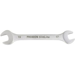 PROXXON Doppelmaulschlüssel, 20 x 22 mm Durchmesser 2: 22 mm Durchmesser 1: 20 mm Dieser SlimLine-Doppelmaulschlüssel besitzt eine aufwendige Oberflächenbehandlung um Rost fernzuhalten (2x vernickelt, 1x verchromt). Sein griffiger und gut in der Hand liegender Schaft besitzt eine hautfreundliche Oberfläche (Satin-Finish). Er besitzt keine scharfen Ecken oder Kanten, dafür aber polierte, verchromte Köpfe. Obwohl extrem schlank und leicht, liegen die Drehmomente weit höher, als von DIN/ISO gefordert. Auch die Maßtoleranzen sind besser als von DIN/ISO vorgegeben. Eigenschaften: Material: Chrom-Vanadium legiert, gesenkgeschmiedet Größe: 20 x 22 mm Inhalt: 1 Stk.