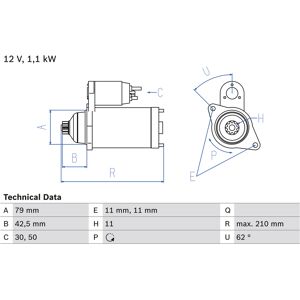BOSCH Starter Anzahl der Gewindebohrungen:2 Klemme:15a Spannung [V]:12 V Zähnezahl:9 Lage/Grad:rechts ° Klemme:50 Flansch-Ø [mm]:82,5 mm Gewindemaß 1:M12x1.75 Anzahl der Befestigungsbohrungen:0 Länge [mm]:220 mm Klemme:30 Ritzel-Grundposition [mm]:14,5 mm Drehrichtung:Drehrichtung im Uhrzeigersinn Gewindemaß:M12 Starterleistung [kW]:1,1 kW Befestigungswinkel [Grad]:30 ° Winkelmaß Befestigungsbohrung [Grad]:30 ° Winkelmaß Maulöffnung [Grad]:210 ° Austauschteil Starterausführung:eigengelagert , u.a. für Audi 80 B3 (893, 894, 8A2), 1595 cm³, 75 PS (55 kW), 9/1986 bis 8/1991, KBA-Nr: 0588382Audi 80 B3 (893, 894, 8A2), 1595 cm³, 70 PS (51 kW), 8/1987 bis 9/1991, KBA-Nr: 0588415Audi 80 B3 (893, 894, 8A2), 1984 cm³, 137 PS (101 kW), 3/1990 bis 9/1991, KBA-Nr: 0588492Audi 80 B3 (893, 894, 8A2), 1984 cm³, 137 PS (101 kW), 3/1990 bis 8/1991, KBA-Nr: 0588498Audi Coupe B3 (89, 8B3), 1984 cm³, 115 PS (85 kW), 5/1989 bis 12/1996, KBA-Nr: 0588501Audi Coupe B3 (89, 8B3), 1984 cm³, 140 PS (103 kW), 8/1992 bis 12/1996, KBA-Nr: 0588557Audi 100 C4 (4A2), 1984 cm³, 100 PS (74 kW), 12/1990 bis 7/1994, KBA-Nr: 0588504Audi 100 C4 (4A2), 1984 cm³, 115 PS (85 kW), 12/1990 bis 7/1994, KBA-Nr: 0588513Audi 80 B4 (8C2), 1595 cm³, 71 PS (52 kW), 9/1991 bis 12/1994, KBA-Nr: 0588542Audi 80 B4 (8C2), 1595 cm³, 101 PS (74 kW), 6/1993 bis 12/1994, KBA-Nr: 0588579Audi 80 B4 (8C2), 1984 cm³, 90 PS (66 kW), 9/1991 bis 12/1994, KBA-Nr: 0588519Audi 80 B4 (8C2), 1984 cm³, 115 PS (85 kW), 9/1991 bis 12/1994, KBA-Nr: 0588536Audi 80 B4 (8C2), 1984 cm³, 140 PS (103 kW), 8/1992 bis 12/1994, KBA-Nr: 0588560Audi 80 B4 (8C2), 1984 cm³, 140 PS (103 kW), 4/1992 bis 12/1994, KBA-Nr: 0588561Audi 80 B4 (8C2), 1984 cm³, 115 PS (85 kW), 9/1991 bis 12/1994, KBA-Nr: 0588537Audi 80 B4 (8C5), 1984 cm³, 90 PS (66 kW), 7/1992 bis 1/1996, KBA-Nr: 0588544Audi 80 B4 (8C5), 1984 cm³, 115 PS (85 kW), 7/1992 bis 1/1996, KBA-Nr: 0588545Audi 80 B4 (8C5), 1984 cm³, 140 PS (103 kW), 2/1993 bis 1/1996, KBA-Nr: 0588572Audi 100 C4 (4A5), 1984 cm³, 100 PS (74 kW), 9/1991 bis 7/1994, KBA-Nr: 0588524Audi 100 C4 (4A5), 1984 cm³, 115 PS (85 kW), 9/1991 bis 7/1994, KBA-Nr: 0588531Audi Cabriolet B4 (8G7), 1984 cm³, 115 PS (85 kW), 1/1993 bis 7/1998, KBA-Nr: 0588559Audi A4 B5 (8D2), 1595 cm³, 100 PS (74 kW), 11/1994 bis 10/2000, KBA-Nr: 0588591Audi A4 B5 (8D2), 1781 cm³, 125 PS (92 kW), 11/1994 bis 11/2000, KBA-Nr: 0588592Audi A4 B5 (8D2), 1781 cm³, 150 PS (110 kW), 1/1995 bis 11/2000, KBA-Nr: 0588593Audi A4 B5 (8D2), 1781 cm³, 125 PS (92 kW), 1/1995 bis 11/2000, KBA-Nr: 0588600Audi A4 B5 (8D2), 1781 cm³, 150 PS (110 kW), 1/1995 bis 11/2000, KBA-Nr: 0588594Audi A6 C4 (4A2), 1984 cm³, 100 PS (74 kW), 6/1994 bis 10/1997, KBA-Nr: 0588504Audi A6 C4 (4A2), 1984 cm³, 115 PS (85 kW), 6/1994 bis 10/1997, KBA-Nr: 0588513Audi A6 C4 (4A2), 1984 cm³, 140 PS (103 kW), 6/1994 bis 10/1997, KBA-Nr: 0588550Audi A6 C4 (4A5), 1984 cm³, 115 PS (85 kW), 6/1994 bis 12/1997, KBA-Nr: 0588531Audi A6 C4 (4A5), 1984 cm³, 140 PS (103 kW), 6/1994 bis 12...