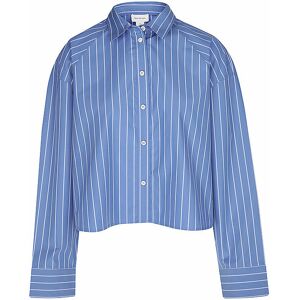 Damen Hemdbluse aus reiner Baumwolle Hemdblusenkragen Langarm Raglanärmel Manschetten Streifenmuster Oversized geschnitten Schließt mit Knopfleiste Kürzer geschnitten Farbbezeichnung: Blue Material: 100% Baumwolle