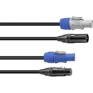 DMX + Netz Multipair Loomsfür die einfache Vernetzung von Geräten, die sowohl DMX-Signal, als auch 230 V Netzspannung benötigen (z. B. DMX-Nebelmaschinen, Moving-Lights usw.). Unser digitales DMX512 Multipair-Kombikabel SC-MONOLITH 1 bestücken wir einerseits mit einem PowerCon Verbinder und einem XLR 3-pol Verbinder von NEUTRIK und an der Gegenseite mit einem PowerCon und einem XLR 3-pol Verbinder. Unsere DMX Kabel besitzen sehr niedrige Kapazitätswerte und eignen sich dadurch auch hervorragend für die Audio- bzw. AES/EBU 110 Ohm-Übertragung.Hochwertiges Hybridkabel NEUTRIK Steckverbindung verbaut, Made in Germany, Weiterführende Informationen zu diesem Produkt finden Sie unter "Downloads" im Datenblatt, Aufbau Kabel: 2 x 0,22 mm² Audiokabel, 33 x 1,5 mm² Stromkabel, Kabellänge: 10 m, Markenverwendung: NEUTRIK Steckverbindung verbaut, Farbe: Schwarz, Gewicht: 1,99 kg