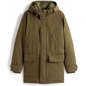 Herren Parka aus Baumwolle-Mix Kapuze mit Kordelzug Stehkragen Schließt mit verdecktem Reißverschluss und zusätzlichen Druckknöpfen Langarm mit Sturmbündchen Eingrifftaschen auf Brusthöhe Pattentaschen Logo-Patch am Oberarm Unifarben Gerade geschnitten Farbbezeichnung: Khaki Material: 84 % Polyester, 16 % Baumwolle