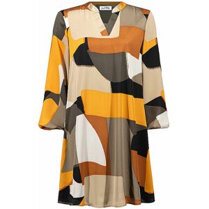 Damen Kleid aus Satin Tunikaausschnitt Langarm mit elastischem Abschluss Abstrakter Print Gerade geschnitten Knieumspielende Länge Farbbezeichnung: Messing Gem Material: 100% Polyester recycelt