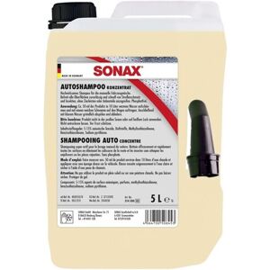 SONAX Glanz-Shampoo Konzentrat (5 L) Höhe: 28: cm Füllmenge: 5: l Tiefe: 19,5: cm Gebindeart: Kanister Breite: 14,5: cm Gewicht: 5,413 kg Durchdringt und löst den Schmutz ohne die konservierende Wachs-Schutzschicht auf dem Lack anzugreifen. Reinigt alle Lack-, Gummi-, Kunststoff-, Vinyl- und Glasflächen. Schont den Lack durch besonders sanfte Tenside. Phosphatfrei und pH-neutral.