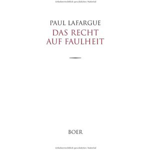 Binding : paperback, Edition : 1., Label : Paul Lafargues Recht auf Faulheit. Eine radikale Kritik der kapitalistischen Arbeitsmoral des 19. Jahrhunderts und ihre Relevanz für moderne Arbeitskulturen, medium : paperback, numberOfPages : 20, publicationDate : 2025-01-24, languages : german, ISBN : 3389105417
