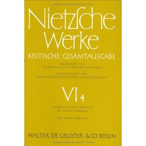 Binding : Gebundene Ausgabe, Edition : 11, Label : Carl Hanser, Publisher : Carl Hanser, medium : Gebundene Ausgabe, numberOfPages : 4032, publicationDate : 1982-04-28, releaseDate : 1982-04-28, authors : Friedrich Nietzsche, publishers : Karl Schlechta, languages : german, ISBN : 3446108173