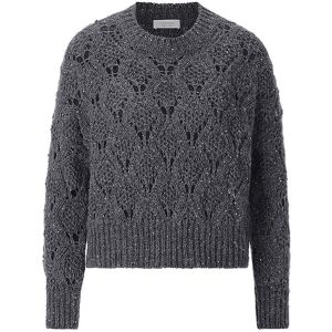 Damen Pullover aus Alpaka-Mischung Rundhalsausschnitt Lange Ärmel Rippbündchen an Ärmel und Saum Gerade Passform Pailletten Besatz  Farbbezeichnung: Shadow Grey Material: 36% Polyester, 35% Polyacryl, 11% Alpaka Wolle, 8% Wolle, 5% Viskose, 5% Polyamid