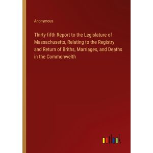 Binding : hardcover, Label : Thirty-fifth Report to the Legislature of Massachusetts, Relating to the Registry and Return of Briths, Marriages, and Deaths in the Commonwelth, medium : hardcover, numberOfPages : 256, publicationDate : 2024-06-02, releaseDate : 2024-06-02, languages : english, ISBN : 3385496993