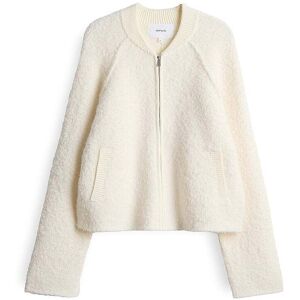 Damen Strickjacke aus weicher Woll-Mischung Gerippter Rundhalsausschnitt Schließt mit Reißverschluss Lange Raglanärmel Seitliche Eingrifftaschen Lockere Passform Unifarben Farbbezeichnung: Soft Cream Material: 59% Polyester, 29% Polyacryl, 9% Wolle, 3% Elasthan
