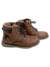 Tom Tailor, Winterboots, Lederimitat,Textil, Farbe: Farbbezeichnung: cognac, Material: Obermaterial: Lederimitat, Textil, Innenmaterial: Warmfutter, Optik/Stil: Applikationen: Kontrastnähte, Logoschriftzug, Details: Besondere Merkmale: mit Logoschriftzügen, Weite G, Verschluss: Reißverschluss, Schnürung, Sohle: Innensohlenmaterial: Polyester, Laufsohlenmaterial: Synthetik, Laufsohlenprofil: leicht profiliert, Passform/Schnitt: Schuhweite: Weit (Weite G)