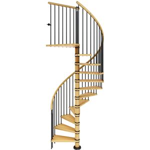 In Buche oder Eiche macht die Winnipeg eine gute Figur. Mit 120 bzw. 140 cm Durchmesser passt sie ideal in kleine Räume. Das Geländer ist inklusive und besteht aus Einzelstäben aus grau pulverbeschichtetem Metall mit einem Holzhandlauf in Segmenten. Die Spindeltreppe mit Massivholzstufen aus geölter massiver Eiche oder Buche und einer Mittelsäule aus Holz ist eine Nebentreppe mit sehr natürlicher Ausstrahlung. Die Säule ist kein durchgehender Stab, sondern besteht aus einzelnen Hülsen, die aus Massivholz gefertigt sind. Die Hölzer Buche und Eiche passen in viele Interieurs. Dadurch fügt sich die Treppe harmonisch und unaufdringlich in den Raum ein. Auch die Mittelhülsen sind aus Holz gefertigt. Der Handlauf ist in Segmente geteilt und besteht ebenfalls aus Holz. Das Material gewährt einen sehr sanften und angenehmen Griff. Da das Holz umweltfreundlich nur geölt ist, tritt die Maserung besonders schön hervor. Die Steigungshöhe ist einstellbar von 20,5 bis 22,5 cm, je nach Geschosshöhe. Das triangelförmiges Podest ist für eckige Deckenöffnungen geeignet, kann aber an runde Deckenöffnungen angepasst werden. Hinweis Die Deckenöffnung muss mindestens 10 cm größer als der Treppendurchmesser sein, damit alles passend eingebaut werden kann. Ganz in Holz! Stufen aus Massivholz Handlauf aus Massivholz Geöltes Holz Mittelsäule aus Holz Baurechtliche Kategorie: Nicht notwendige Treppe Lieferumfang ... Distanzhülsen & Stufen Geländer Podest Befestigungsmaterial Einbauanleitung
