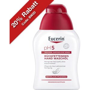 Anwendungsgebiet von Eucerin pH5 Hand Wasch öl empfindliche HautHand Waschöl für empfindliche, trockene Haut – auch bei Neurodermitis geeignet. Selbst bei häufigem Waschen ist die empfindliche, trockene Haut vor dem Austrocknen geschützt und die Widerstandskraft gegen äußere Einflüsse wird bewahrt. Eucerin pH5 Hand Wasch öl empfindliche Haut ist eine medizinische Hautpflege für empfindliche, sensible Haut und ist dermatologisch getestet. Eucerin pH5 ist eine umfassende Serie von Hautpflegeprodukten, die speziell für die Bedürfnisse trockener und empfindlicher Haut entwickelt wurde. Eine empfindliche oder überempfindliche Haut kann z. B. auch in der Allergie-Zeit auftreten. Besonders eine allergie-gestresste Haut/allergische Haut kann mit unangenehmen Juckreiz einhergehen. Das einzigartige Eucerin pH Balance System stellt den optimalen pH-Wert der tockenen und juckenden Haut wieder her und stärkt die natürliche Schutzfunktion. Die Produkte der pH5-Serie schützen die Haut vor dem Austrocknen, unterstützen die langanhaltende Befeuchtung und lassen sie weich und geschmeidig aussehen. Wirkungsweise von Eucerin pH5 Hand Wasch öl empfindliche HautEmpfindliche, trockene Haut neigt dazu, besonders auf Umweltreize mit Spannungsgefühl, Hautrötungen und -irritationen zu reagieren. Daher braucht strapazierte Haut eine besonders milde Reinigung, die die physiologische Balance der Haut aufrechterhält. Eucerin pH5 Hand Waschöl wurde speziell mit extra milden Tensiden zur Reinigung trockener, empfindlicher Hände entwickelt. Die Formel mit dem natürlichen pH-Wert und Dexpanthenol bewahrt nachweislich die natürliche Schutzfunktion und Widerstandskraft der Haut. Reich an natürlichen Pflegeölen, bietet Eucerin pH5 Hand Waschöl intensive Regeneration, Glättung und Beruhigung auch für die am stärksten beanspruchten Hände. Es hilft, das Wiederauftreten von rauer, rissiger Haut zu verhindern und is