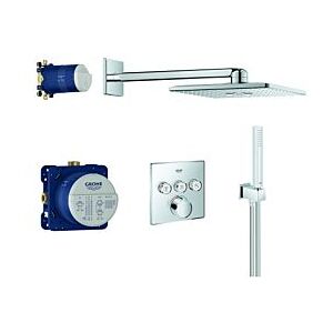 Grohe SmartControl Duschsystem Unterputz Artikelnummer:34712000 bestehend aus: Unterputzmischer mit 3 Absperrventilen SmartControl Mischer Fertigmontageset(29149000) Rapido SmartBox (35 600) Rainshower 310 SmartActive Cube Kopfbrause-Set (26 479) und Rohbauset für Kopfbrause-Set (26 483) Euphoria Cube Handbrause (27 698) Euphoria Cube Wandanschlussbogen mit integriertem Wandbrausehalter (26 370) Brauseschlauch Silverflex 1500 mm (28 364)
